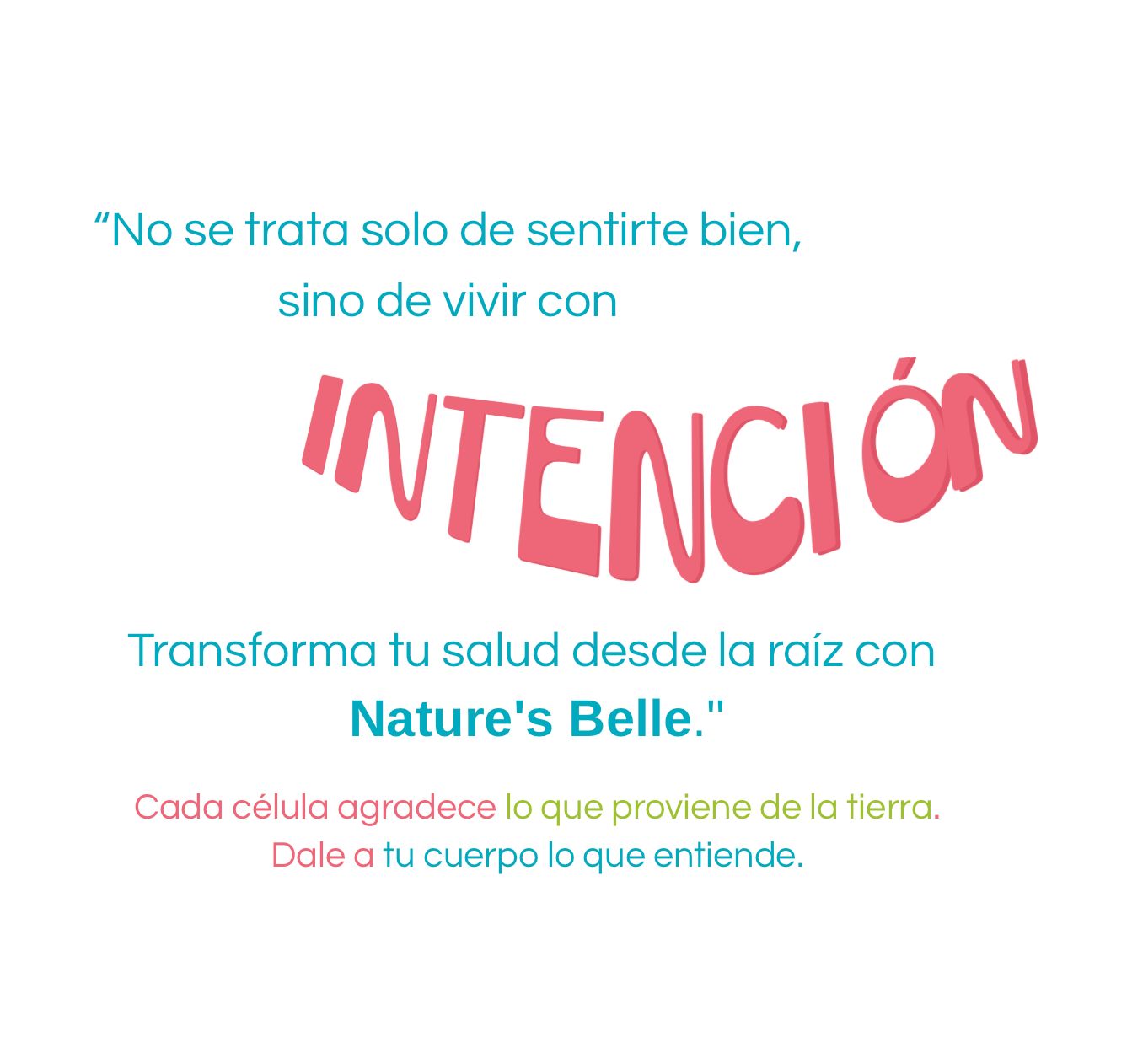 Nature's Belle nace del sueño de mejorar la calidad de vida de las personas convirtiéndolas en su mejor versión física, espiritual, emocional y financiera. Creemos que el cambio comienza desde adentro; por lo que, promovemos un acercamiento a nuestro centro, a ser fieles a nuestros valores y actuemos lo mejor posible por que es digno de nosotros. Es por eso que estamos en constante innovación de productos naturales que promueven el bienestar general del cuerpo y la mente. Somos una empresa noble dedicada a llevar poder y plenitud a todas las áreas de tu vida, donde te sientas parte de una comunidad, puedas conocerte mejor, transformar tu vida y servir a los demás.